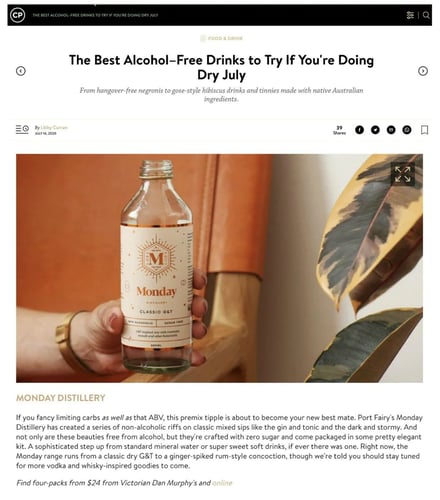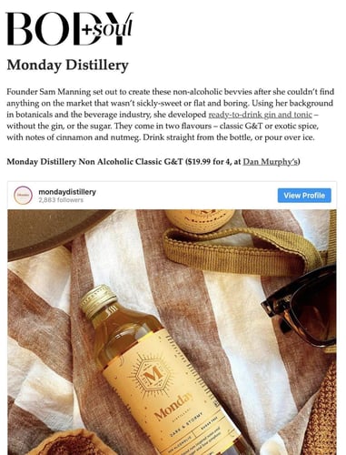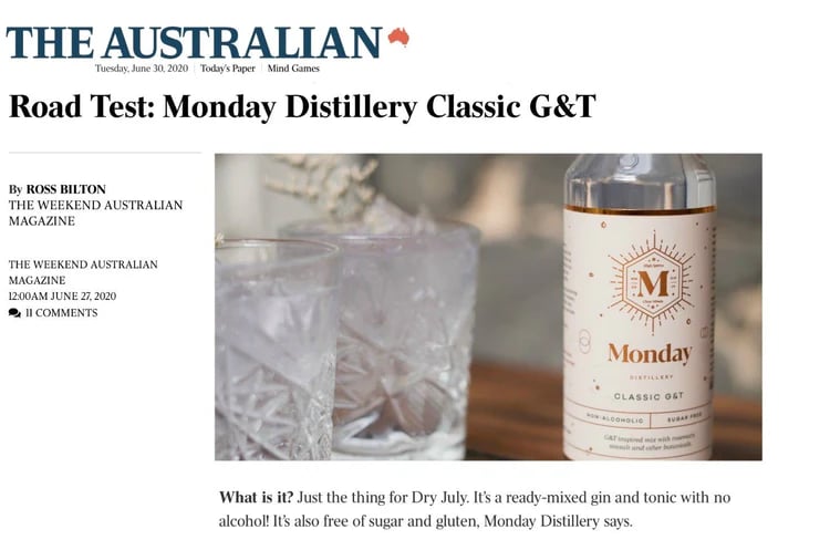 Australian Women's Weekly By Sarah Murphy Monday Distillery makes ditching the alcohol easy, plus they’re also sugar-free. The Classic G&T (pictures) is mixed...